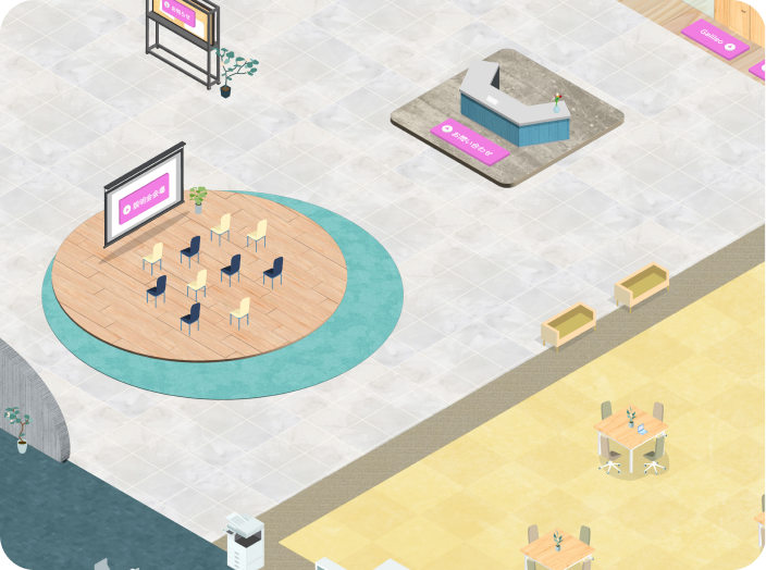 採用活動において「オンラインでのコミュニケーションを最大化」することを目指して開発されたバーチャル空間で、双方向でオンライン画面上で自由にコミュニケーションを図ることができます。オフィスをカスタマイズ